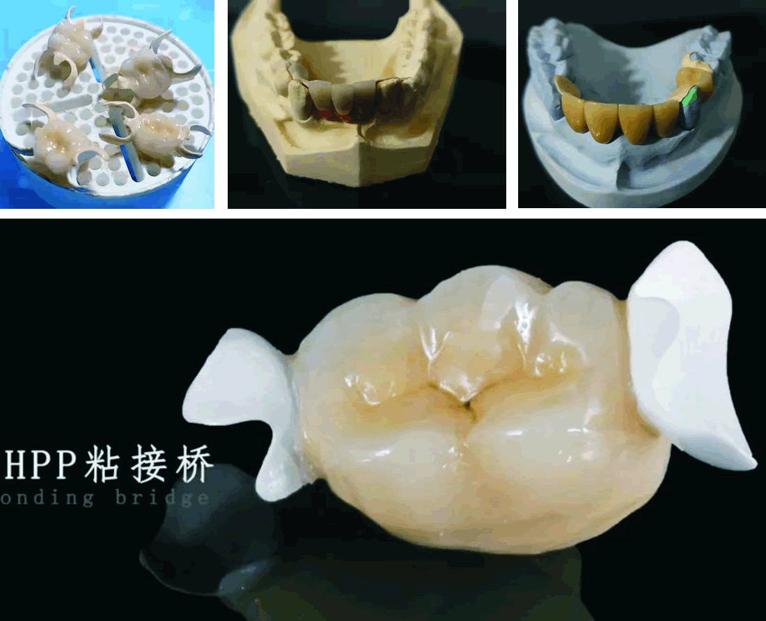 由于BioHPP有极高的机械强度值,它适合用于大型桥结构(跨度高达16MM)和种植修复中可摘式修复。缓冲咀嚼力,减少种植体负荷、重量轻,患者舒适度更高。